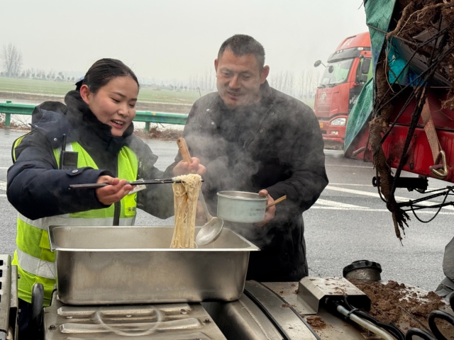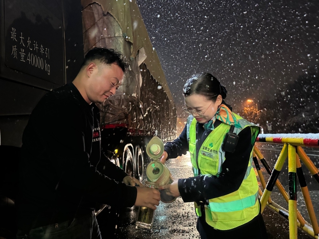 受降雪影響的收費站同步開展收費車道及廣場積雪清掃,確保站區(qū)通行順暢。與此同時,各收費站積極開展“暖冬行動”,為司乘人員提供熱水、姜茶、簡餐、手機充電及車牌除雪等貼心服務(wù),在寒冷雪天中傳遞“皖美高速”的溫暖與關(guān)懷。96566熱線服務(wù)中心增加話務(wù)坐席,及時回應(yīng)群眾訴求。各服務(wù)區(qū)、加油站強化現(xiàn)場管理和車輛疏導(dǎo),通過鋪設(shè)防滑墊、麻袋等落實防滑措施。