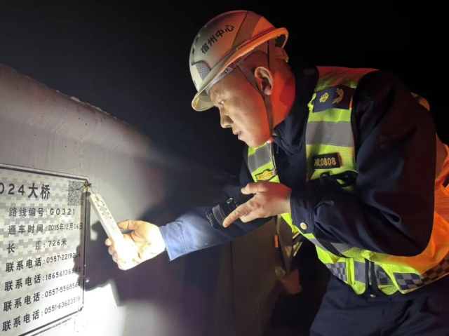 宿州中心碭山保暢分中心巡查人員夜間檢查橋梁溫度