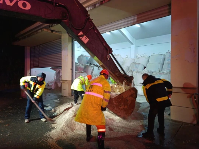 蚌埠中心涂山懷遠站工作人員裝填融雪劑