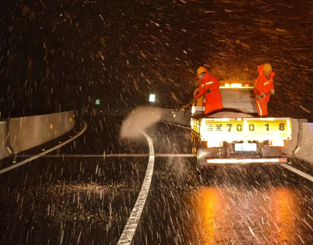 跨年之夜,我省京臺、滬陜、德上、合安等多條高速公路主干線相繼出現(xiàn)降雪。皖通公司和亳州、徐明、宿州、蚌埠、阜陽、合安、六安、淮南、高界、蕪湖等十余家管理中心以雪為令,啟動低溫雨雪冰凍災害應急響應,徹夜鏖戰(zhàn),保障了路網(wǎng)運行始終安全平穩(wěn)有序。截至1月1日上午8時,集團所轄路段積雪及時清除,未出現(xiàn)結冰現(xiàn)象,道路通行順暢。累計投入人員超1300人次、機械設備500余臺班,撒布融雪劑約1900噸。