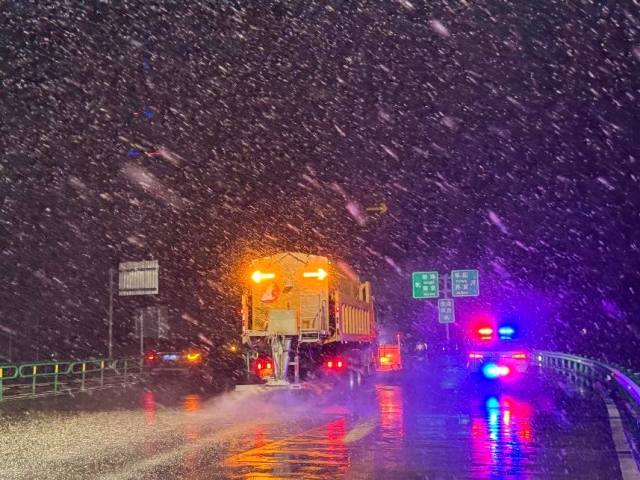 養(yǎng)護公司緊急調(diào)集“國儲中心”除雪車輛馳援降雪路段營運單位,并組成由除雪滾刷車、融雪劑撒布車的作業(yè)編隊迅速到位,對關鍵路段展開多輪次、不間斷除雪作業(yè)。