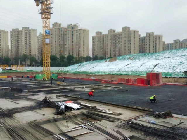 交控建工集團廬江縣醫(yī)療衛(wèi)生應急能力提升項目工人進行筏板鋼筋施工