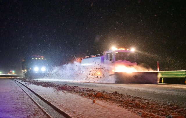 集團所屬各營運管理中心加大應(yīng)急人員設(shè)備投入,采取多機械聯(lián)合作業(yè)、加大融雪劑撒布量、鏟雪車梯隊作業(yè)、警車壓速帶道等綜合措施,在重點路段開展循環(huán)除雪作業(yè)。同時,依托一路多方聯(lián)動機制,與鄰省緊密協(xié)作,在省界路段實現(xiàn)除雪作業(yè)高效銜接,保障跨省車輛安全有序通行。
