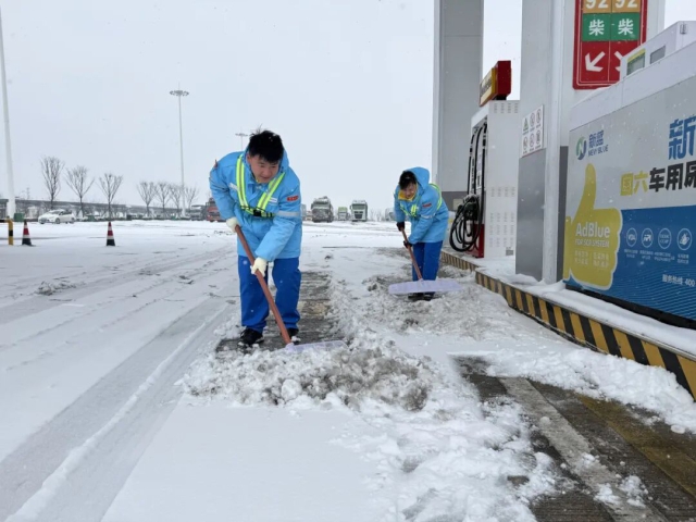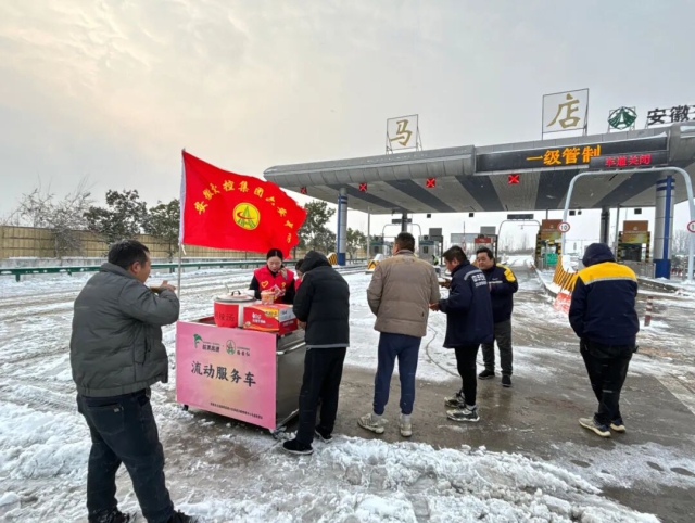 各道口及時清掃廣場積雪,持續(xù)開展“暖冬行動”,設(shè)置便民服務(wù)點,開放溫暖休息場所,為滯留司乘提供熱水、簡餐、充電、取暖等貼心服務(wù),在風(fēng)雪中傳遞“皖美高速”的溫暖。此外,各服務(wù)區(qū)強化現(xiàn)場管理,在易結(jié)冰區(qū)域采取撒布融雪劑,鋪設(shè)防滑墊、麻袋等防滑措施,保障行人車輛安全通行。加油站保障油料充足供應(yīng),及時清理加油區(qū)及出入口通道積雪。