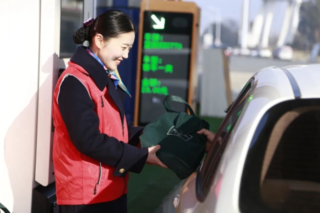 合肥中心機(jī)場(chǎng)站收費(fèi)員協(xié)助綠通車輛快速通行