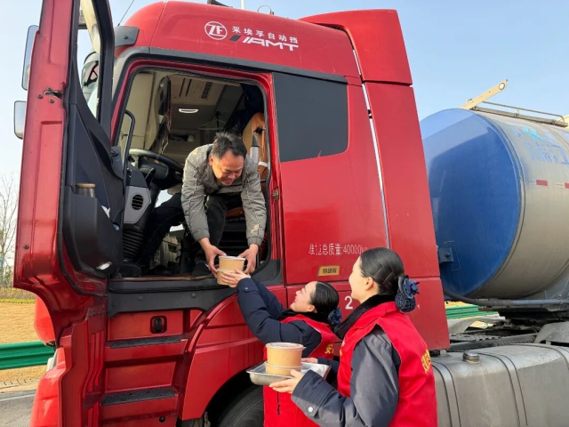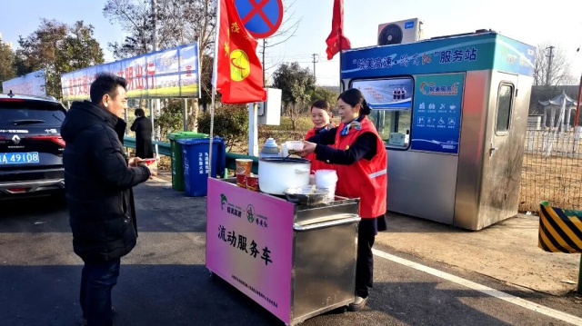 六安中心馬店站設(shè)立流動(dòng)服務(wù)車為返鄉(xiāng)司乘提供暖心早餐