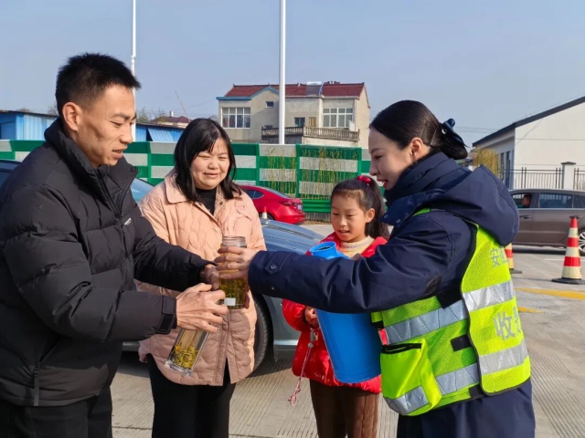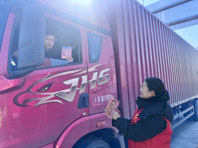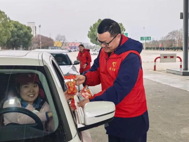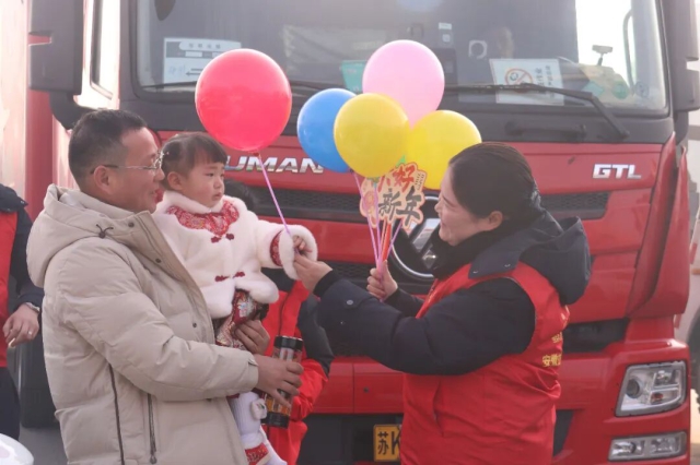 蕪湖中心灣沚站工作人員給過(guò)往司乘送上新年禮物