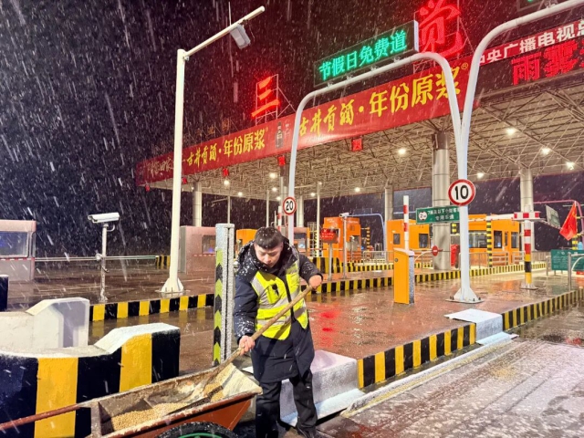 合六中心三覺(jué)站工作人員在車道撒布融雪劑